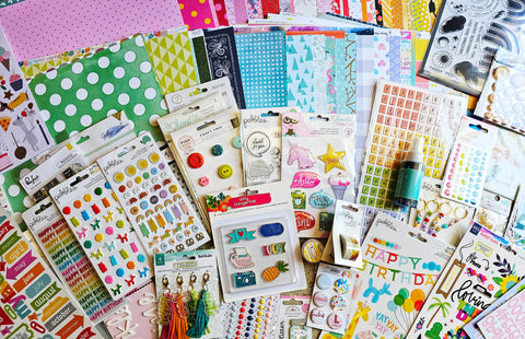 Includes at least 40 sheets of paper and 10 embellishments.